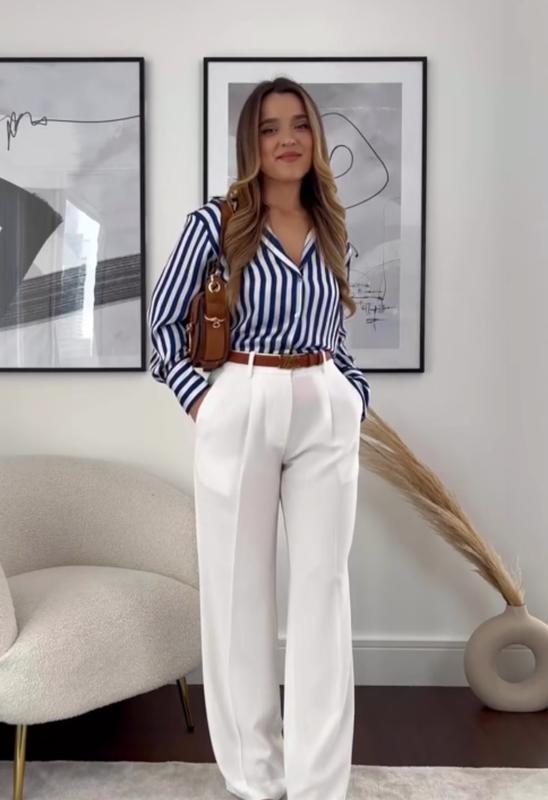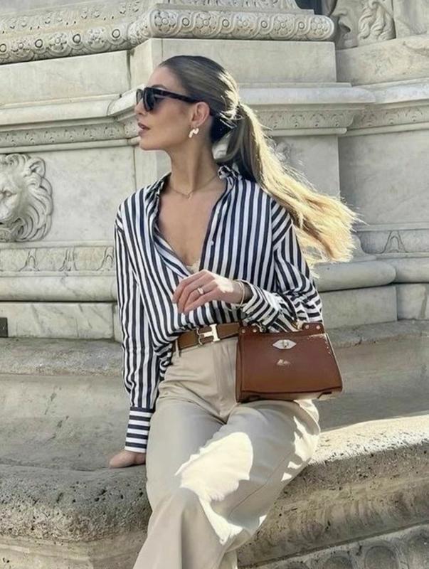 Шикарна сорочка в полоску тредова сорочка в офісному стилі рубашка в полоску приталена рубашка