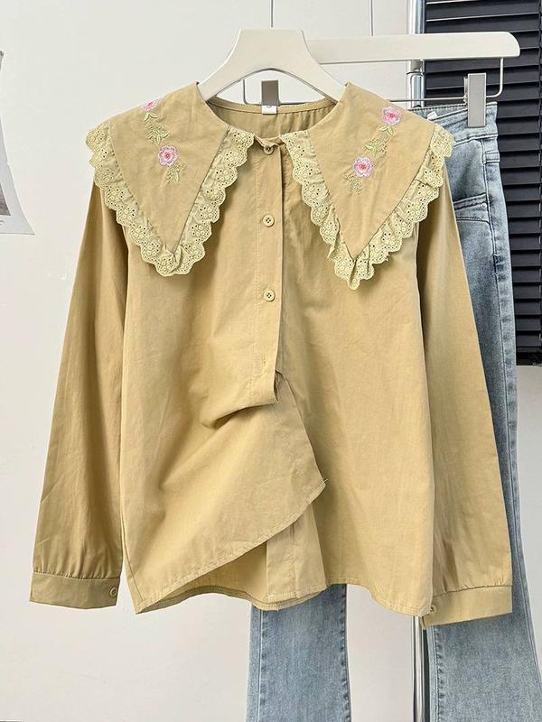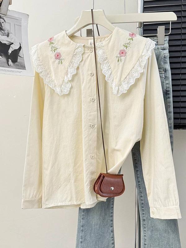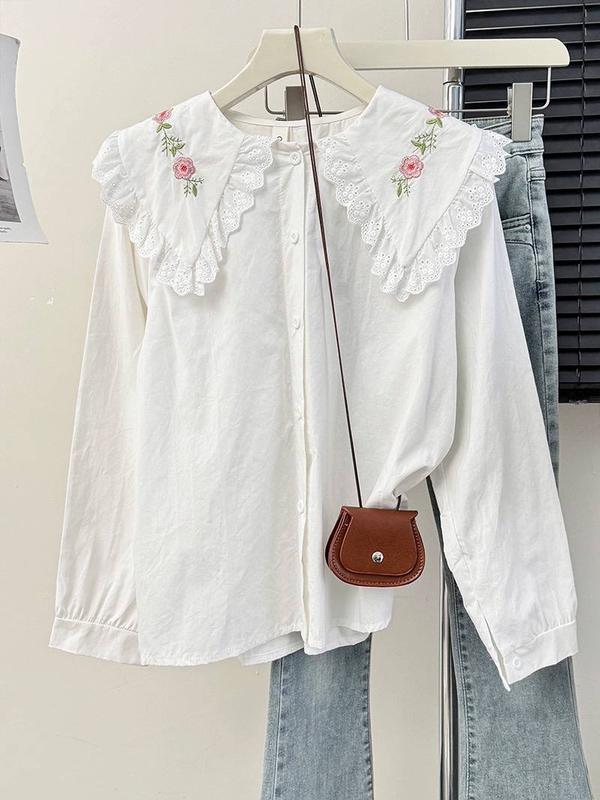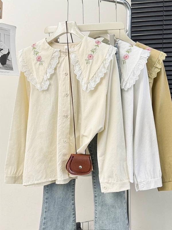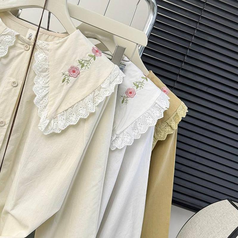 Класична жіноча сорочка з акцентним комірцем, прикрашеним квітковою вишивкою🌷Мод: 2404Колір: білий, айворі, темний бежРозмір: універсал с/мТканина: котонЦіна 550 грн