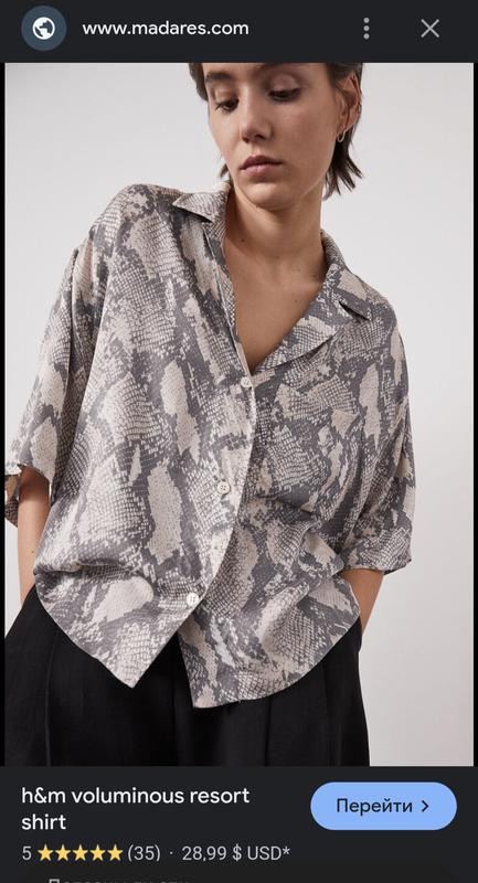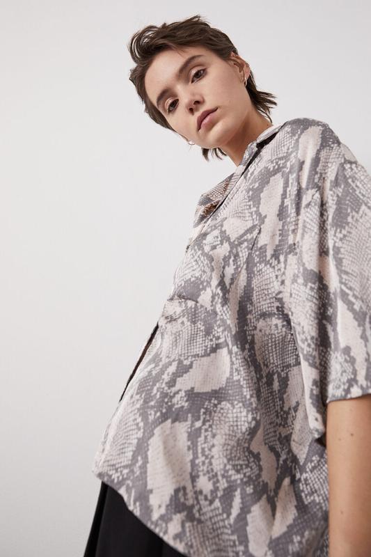 Укорочена сорочка в зміїний принт від H&M100% віскозаКрій оверсайз Розмір S, можна і на більше, і менше