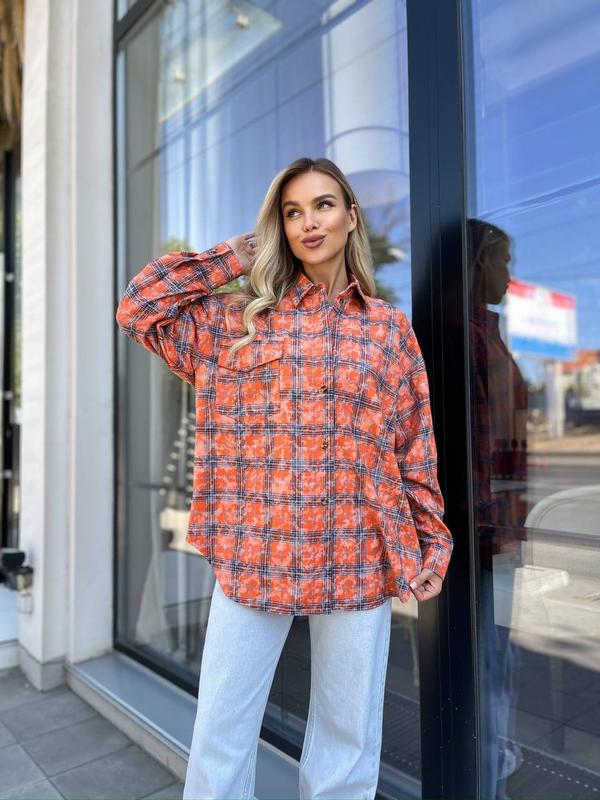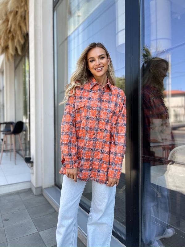 Сорочка (рубашка) жіноча варьонка котон в клітинку 42-48 бордова, помаранчева, сіро-рожева