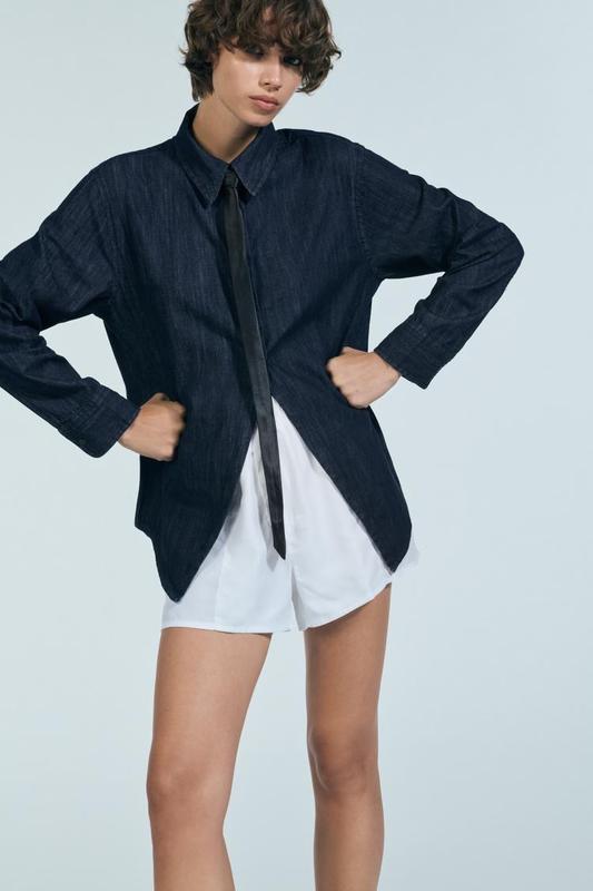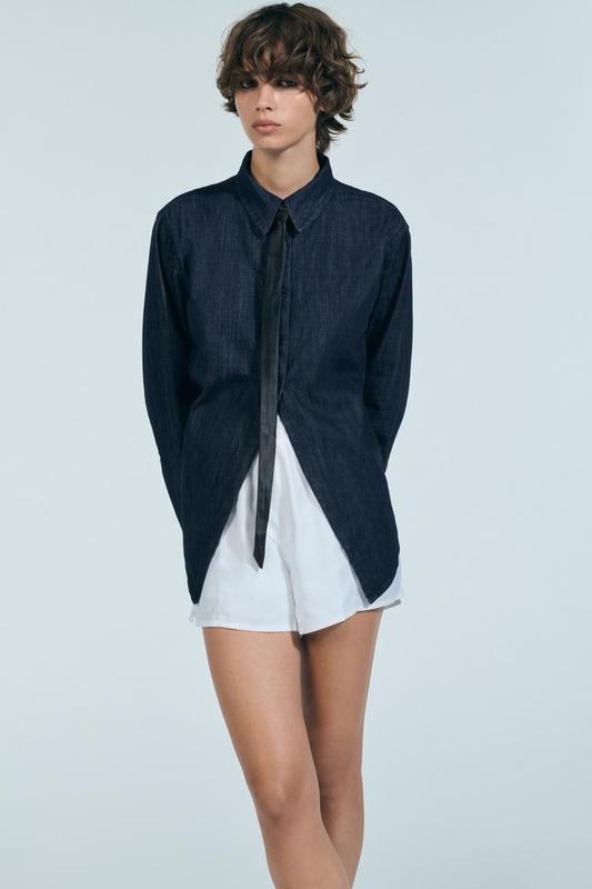 Сорочка з класичним коміром і довгими рукавами. Затискач ззаду. Розріз спереду та знизу. Застібається на ґудзики спереду.