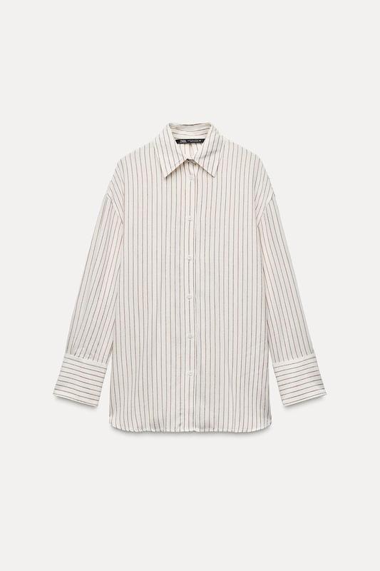 Сорочка з класичним коміром. Довгі рукави з опущеними плечима та манжети зі складками. Вирізи і зав'язки ззаду. Застібається на ґудзики спереду.Екрю/коричневий | 8437/416