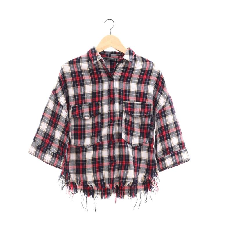 якісна скорочена сорочка/оверсайз у клітку від "Zara Trafaluc"/пишуть розмір S - наш 38-40рр.