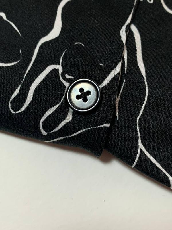 Жіноча сорочка від бренду DKNY. Розмір L. Цікавий малюнок. Тканина м'яка та луже приємна на дотик. Добре тягнеться. Стан дуже гарний.Заміри:Довжина спереду 46смДовжина спинки 65смПід пахвами 58смНиз 58смРукав від плеча 63см