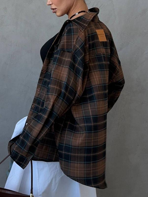 Байкова сорочка в клітинку на осінь зиму, жіноча картата сорочка на гудзиках, рубашка в клітинку, 1625