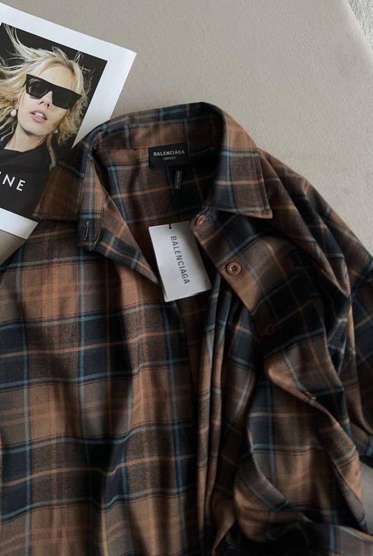 Новая длинная рубашка оверсайз- s/l. сорочка, коричневая рубашка в клетку