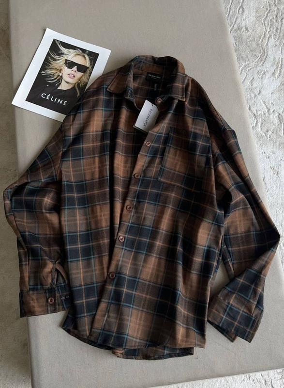Сорочка довга в клітинку оверсайз коричнева червона хакі
