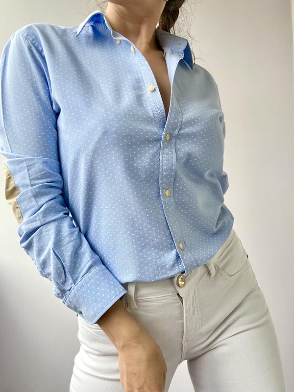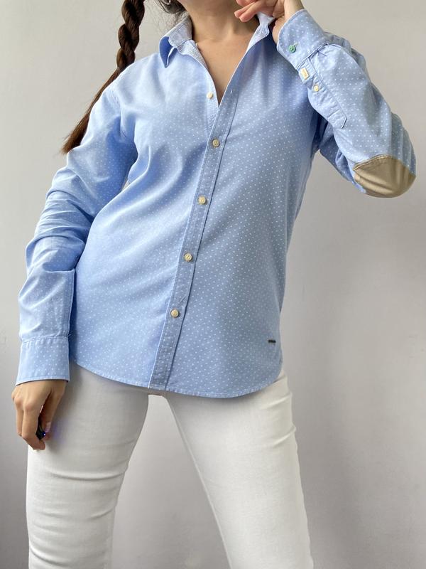 Базова джинсова бавовняна сорочка/рубашка від бренду SCOTCH & SODA, сорочка шикарна, стан гарний, дуже красивий відтінок блакитного-схожий на тоненький денім у білий маленький трикутник, бежеве оздоблення нашивок на ліктях додає родзинку, тканина преміум, щільна, легка та приємна до тіла, має плетену фактуру, вільний крій з обʼємними рукавами з чоловічого плеча, гарно буде під джинси та класичний стиль, доповнить будь-який образ. Розмір повномірний S, можна на M, але краще орієнтуватися по замірах, мої та параметри сорочки дивіться нижче 👇