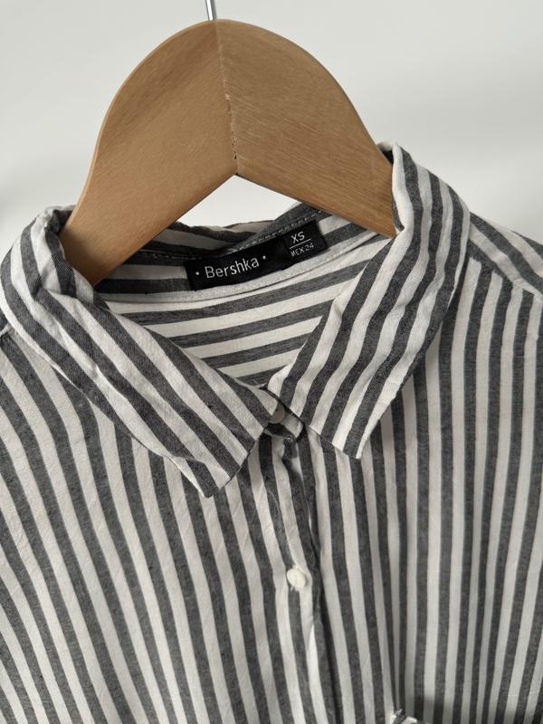 Біла сіра сорочка бавовна в смужку без коміра перлів паєтки світла натуральна