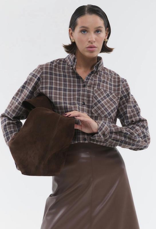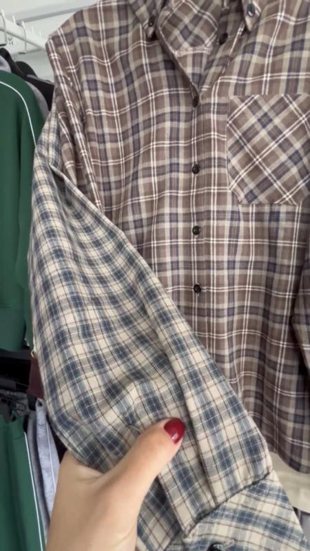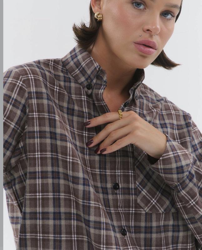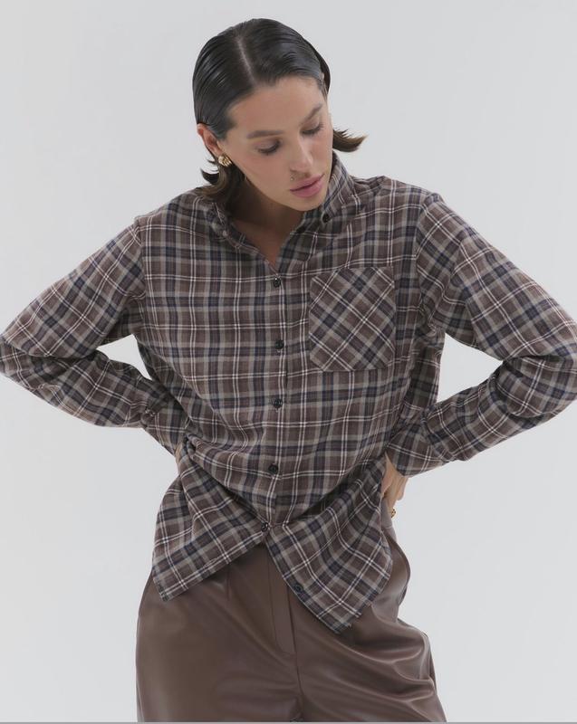 Шоколадна фланелева бавовна сорочка в клітинку картата коричнева