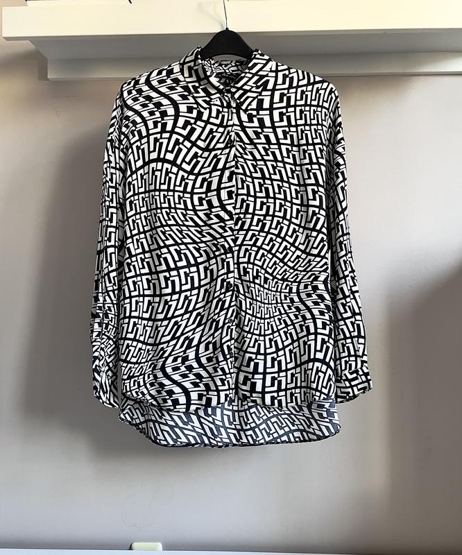 Натуральна,приємна,низпадаюча,чорно-біла соррчка-оверсайз в абстрактний принт,не просвічує,відмінної якості та крою.Заміри дивіться на фото