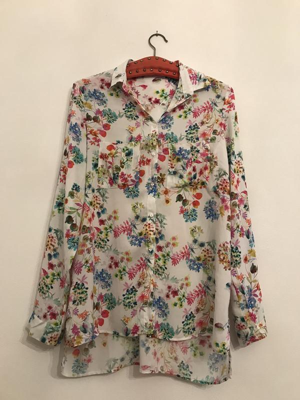 Дуже гарний дизайн блузки відомого бренду. Ідеальний стан, без дефектів. Бирка зрізана,матеріал-віскоза. Меряйтесь за вимірами зазначених в описі Довжина ззаду 76 Спереду 67 Плечі 41 Рукав 63 Пог от50 до 57 Піт от49 до 57 Побіди 57