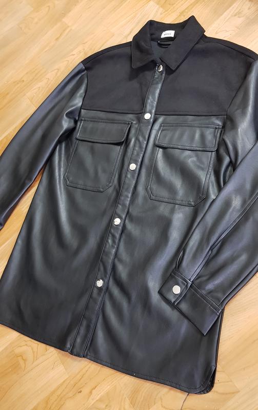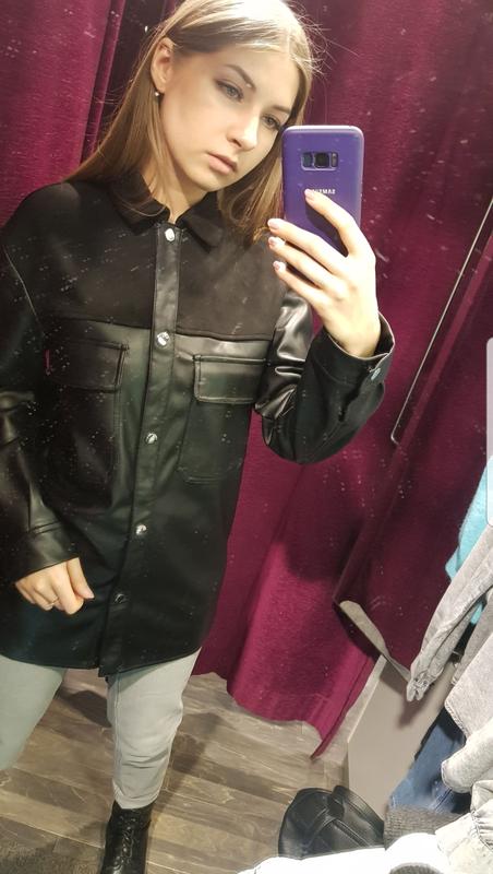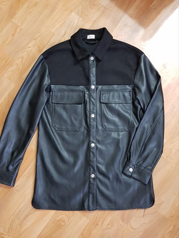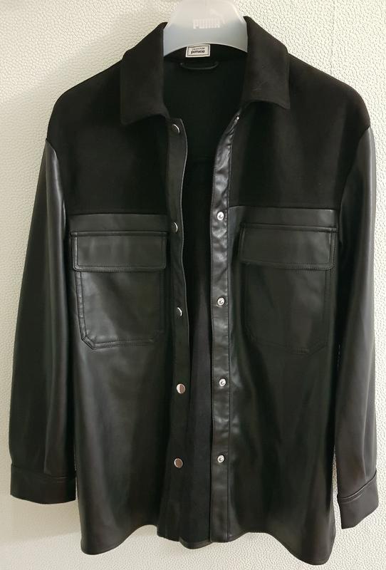 Нова шкіряна сорочка pimkie. В шкарпетці не була жодного разу, продаю так як просто висить у шафі. Розмір на бірці вказаний Xs, але за фактом йде на S-M. Верх зроблений під шкіру, зсередини замш, дуже приємна до тіла. Сорочка подовжена, можна носити під пояс🌷☺️ Відправляю новою поштою.