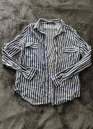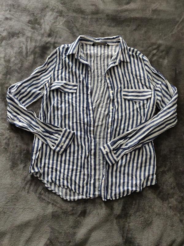 Базова сорочка з віскози, смужка сіня з білим, дуже приємна до тіла, легенька, літня. Розмір S-M, заміри: плечі 40, рукав 62, довжина по спині 65. Без дефектів. Можлива безпечна оплата або передоплата на карту. Відправлення НП і УП. Торг при замовленні від 3 одиниць товару. Дивіться інші мої оголошення❤️