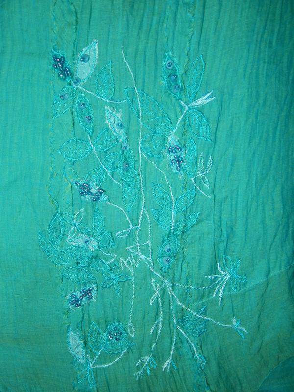 ПОГ 62-66см, рукав 46см, довжина 70см, низ 67см. Гарне оздоблення вишивкою, бісером, пайєтками на полочках та спині.
