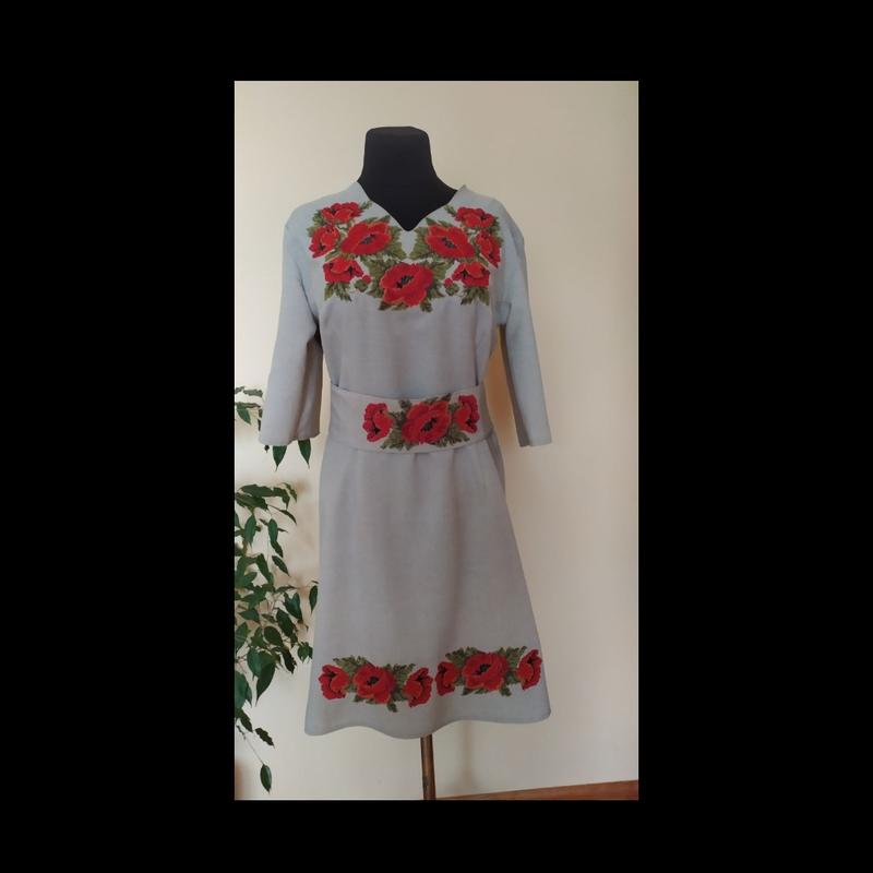 Заміри півобхват в грудях 52 см півобхват в талії 45 см півобхват в бедрах 55 см плечі 44 см довжина по спині 92.5 см довжина рукава від плеча 34.5 см Машинна вишивка