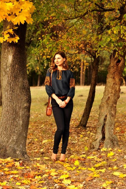 Поєднання глибокого темно-синього фону зі шляхетною бронзою перетворює цю блузу в неабияку річ! Але при цьому неможливо придумати де б вона могла стати недоречною!