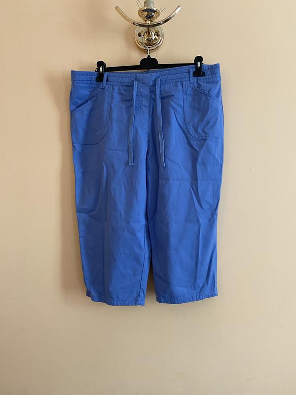 Батал ! Великий розмір! Класні сині котонові бриджи Довжина 78 ПОТ 50-56 ПОС 61-63 Довжина по внутрішньому шву 49 Висота посадки спереду 31, сзаду 37 Ширина штанини вверху 38-40, внизу 24