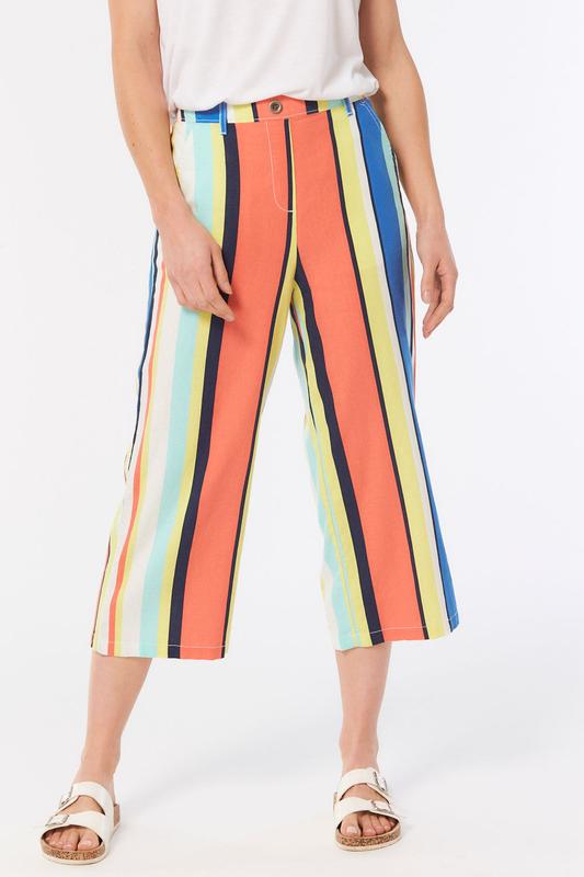 Льняні штани кюлоти від англійського бренду Bonmarche. Пояс по спинці на резинці. Є кишені. Тканина м'яка і приємна на дотик, не тягнеться. (4842) Розмір: 20 Напівобхват талії: 52 см, тягнеться до 63 см Напівобхват стегон: 67 см Довжина зовнішнього шва: 85 см Довжина внутрішнього шва: 52 см Висота посадки спереду: 35 см Висота посадки ззаду: 45 см Напівобхват штанини вгорі: 40 см Напівобхват калоші: 30 см Склад: 55% льон, 45% віскоза