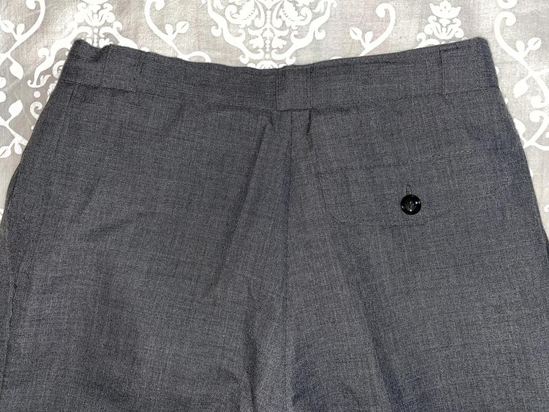 Бриджі жіночі штани, всередині кладка. Колір темно-сірий. Застібається на блискавку та гудзик. Попереду дві великі кишені, ззаду одна кишеня застібаються на гудзик (див. фото).