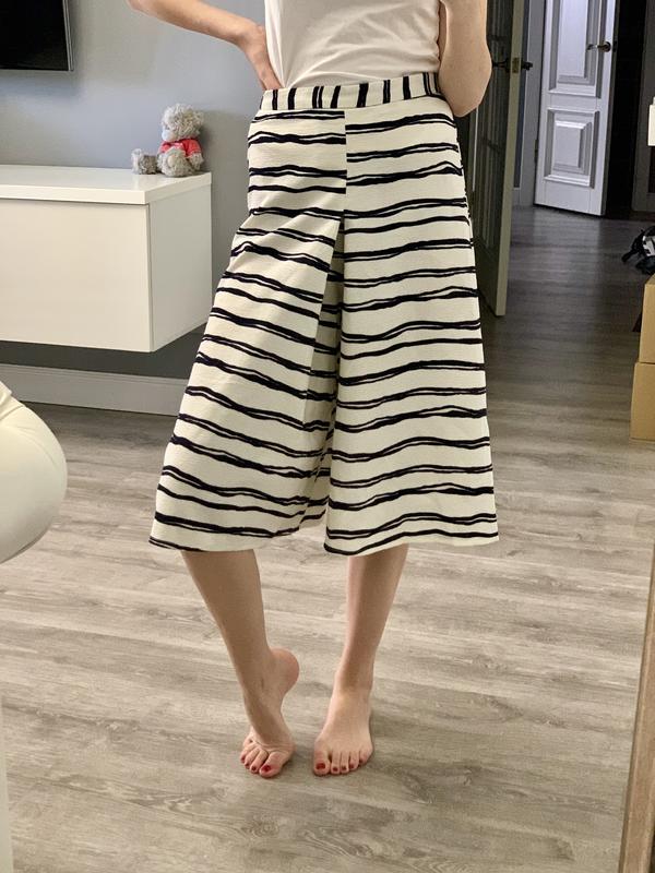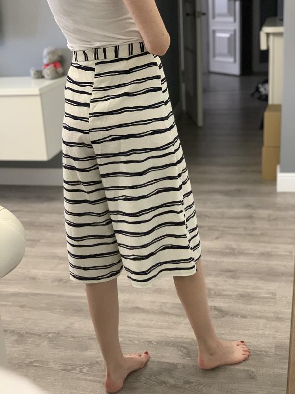 Модні кюлоти білі з темно синіми смугами, виглядають дуже стильно. Розмір хс.