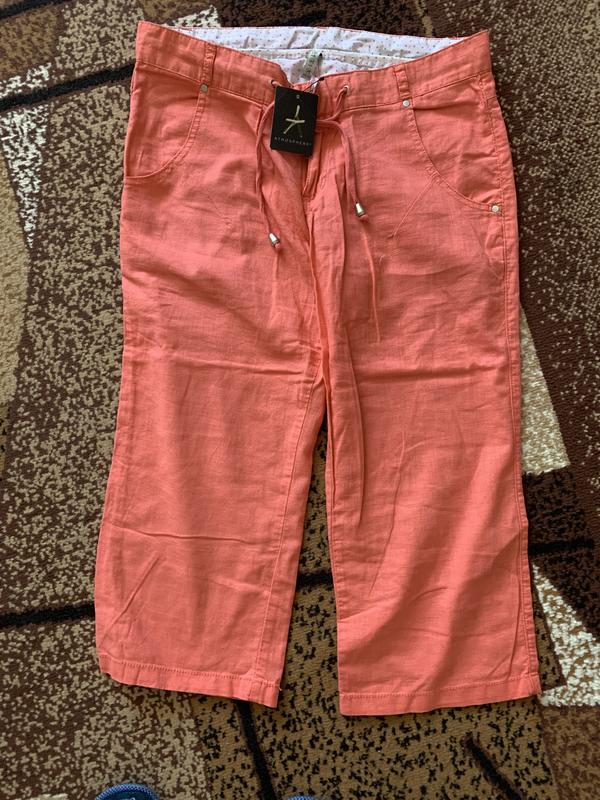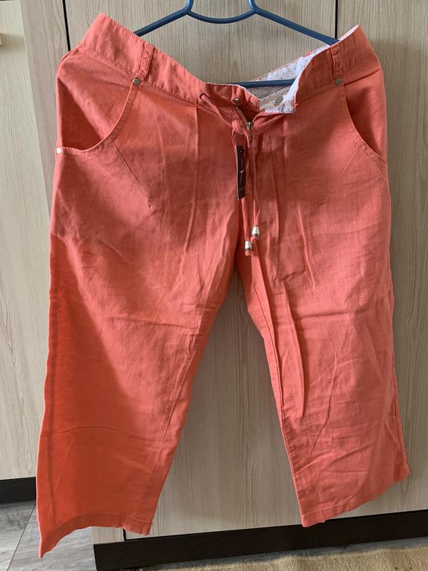 Лляные літні брюки, льон з бавовною дає дуже ніжне і легке поєднання приємного персикового кольору, з кишенями попереду