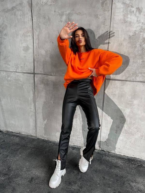 Брюки на високій посадці,добре сідають по фігурі + тканина добре тягнеться .🌝