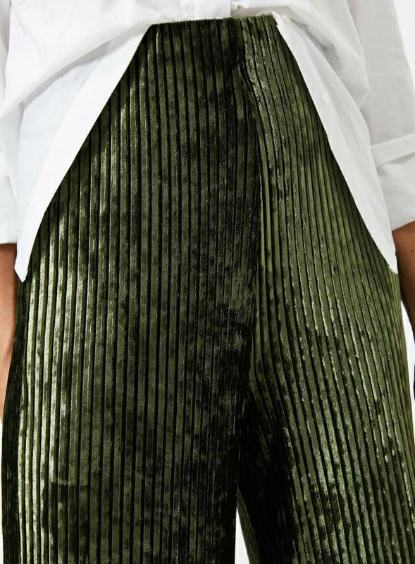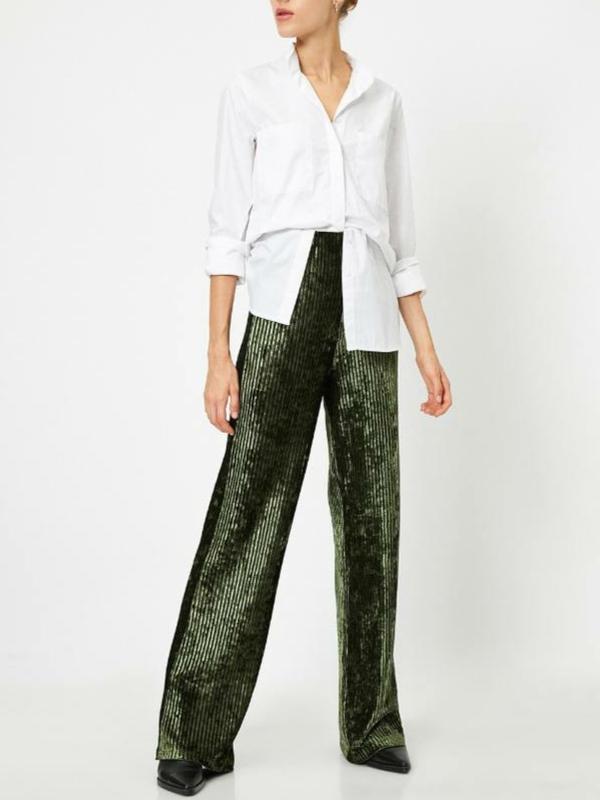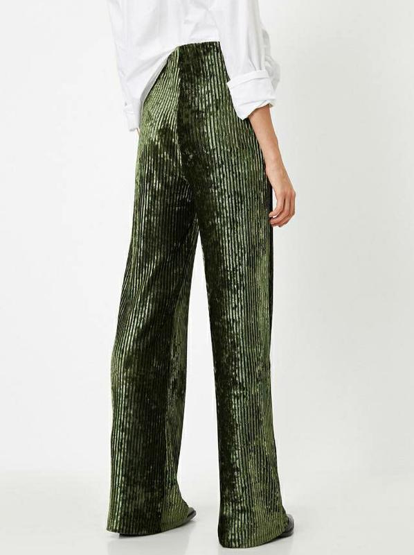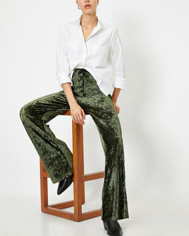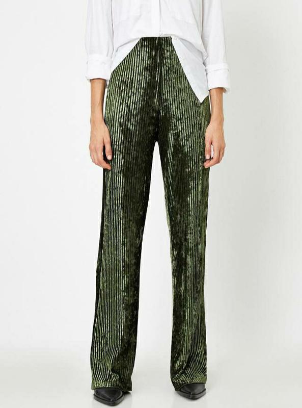 Струменясті жіночі штани прямого крою. Тканина м'який велюр із плісируванням. Верх на гумці. Садяться по фігурі. Довжина під каблук, але можна укоротити під зріст. Розмір М, можна S. Висока посадка.