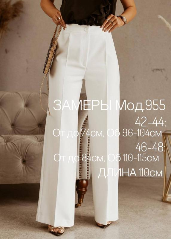 Брюки. Матеріал: костюмка. Доступні розміри: 42-44, 46-48. Заміри внизу по тексту, або на останньому фото. Кольори в наявності: на фото. Ціна 690 грн. Відправка Новою поштою, Укрпоштою.