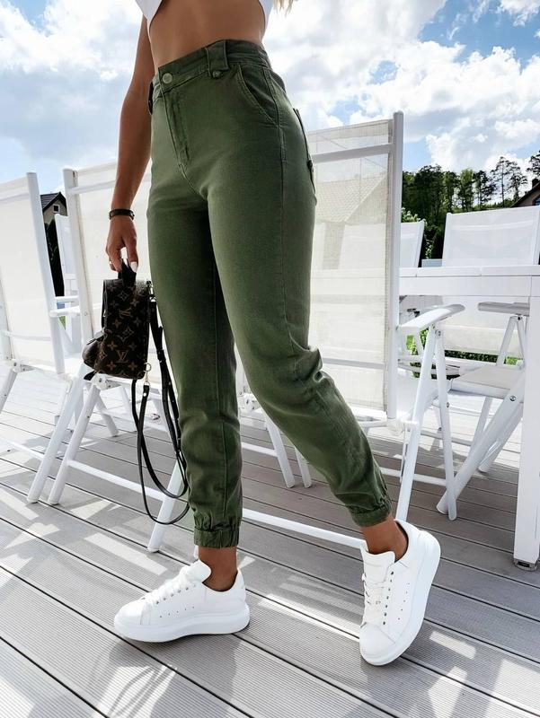 Штани Модель 803 Розміри 42-44, 46-48 Модель 1803 Розміри 50-52, 54-56 Тканина бенгалін джинс, добре тягнеться Штани-джоггери виконані з еластичної тканини бенгалін джинс, пояс ззаду на резинці для регулювання на ваш об'єм талії, манжети внизу на резинці, бічні та задні кишеньки забезпечують комфорт та зручність Ідеальна висока посадка Кольори гірчиця, хакі, чорний і світлий мокко, темно-синій та оливка. am
