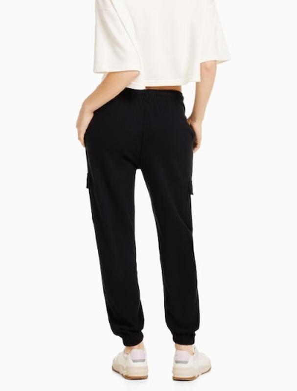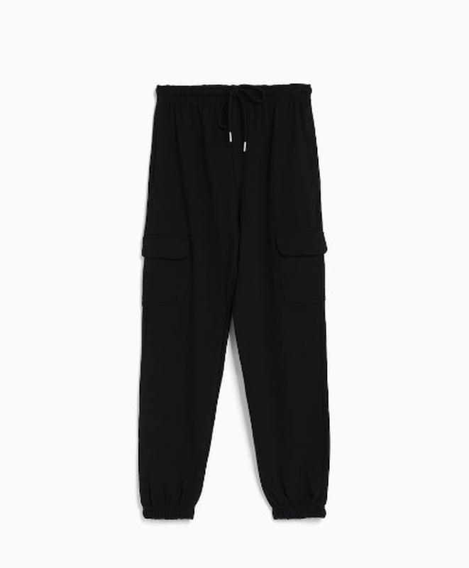 Стильні жіночі штани від Bershka (Іспанія). Актуальна та комфортна модель джоггери. Дуже модні великі кишені в зоні коліна. Талія на широкій гумці, регулюється шнурком. Дві бічні кишені. М'яка та приємна тканина. Чудовий варіант для міжсезоння (усередині двонитка). Чудова якість! Склад: 75% бавовна, 25% поліестер.