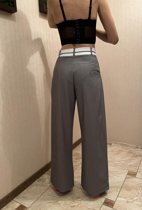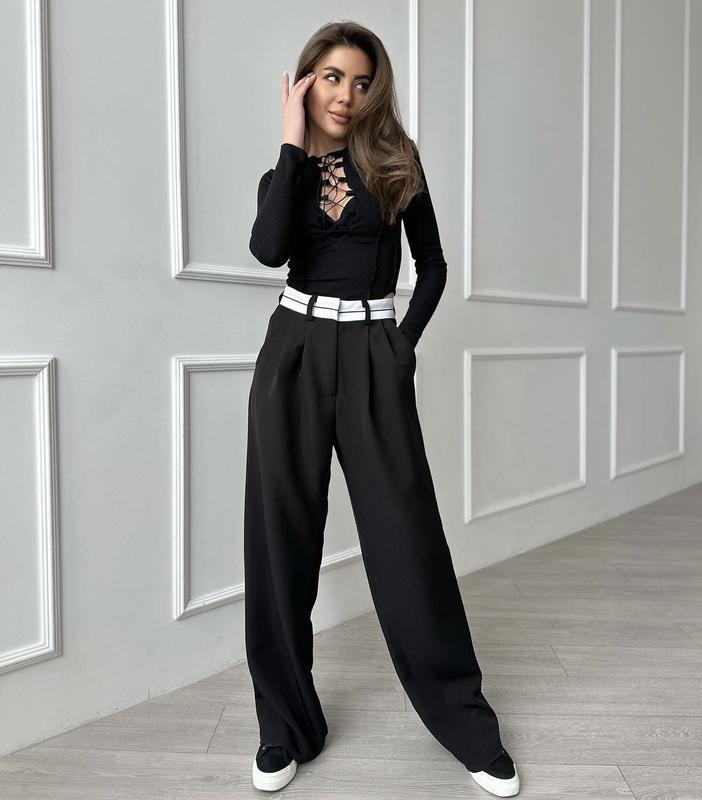 Брюки палаццо широкі з білим поясом штани з білим поясом