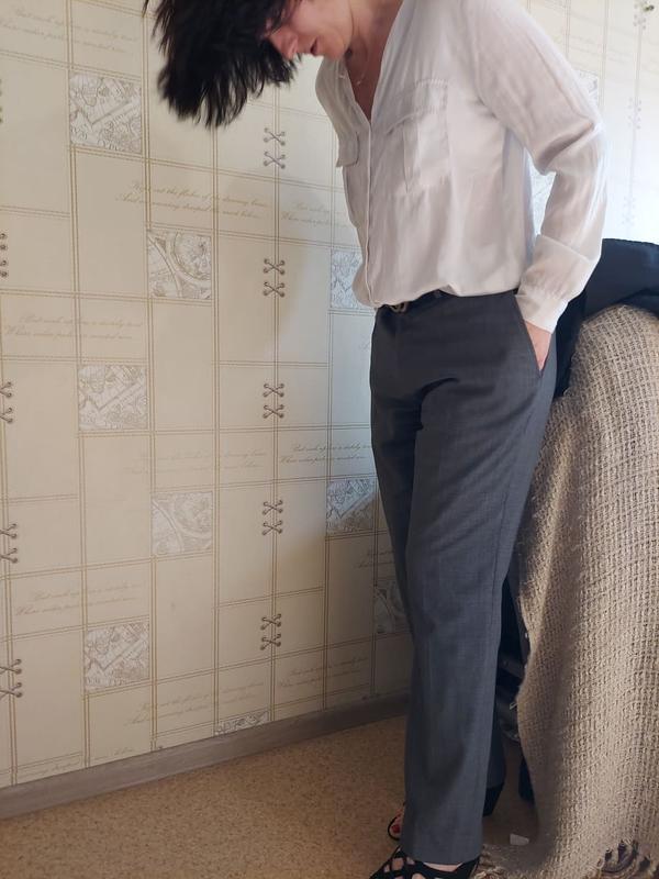 Унісекс, ґудзик на правому боці. У моделі на фото менший розмір — тому штани злегка сокиритися.