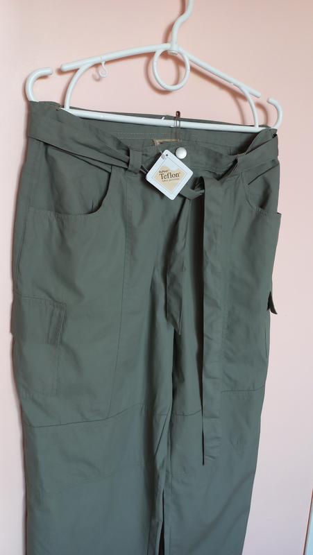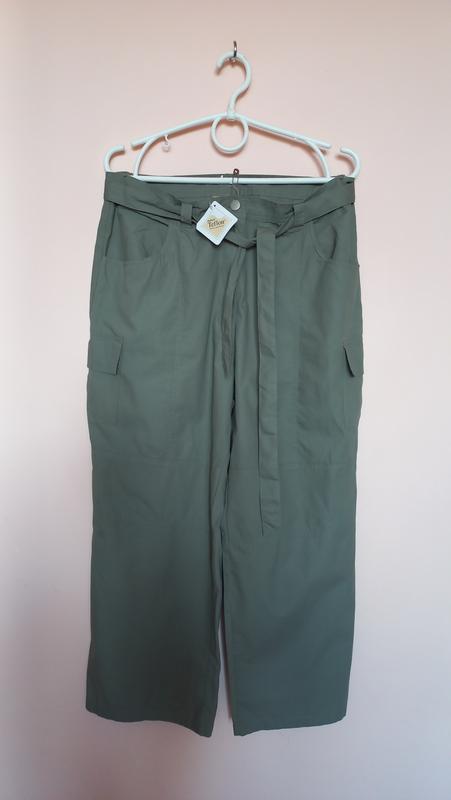 Брюки нові!! Якісні, фірмові, стильні, легенькі, бавовняні!! Колір блідо оливково-сірий! В кого низький зріст, можна носити як брюки, а в кого високий зріст - річ підійде як капрі, бриджі. Заміри: довжина 92 см, шаговий шов 64 см, талія 42-43 см, стегна 56-57 см, тканина не тягнеться, носяться вільно, посадка спереду 33 см, ззаду 37 см, ширина штанців на виході 25 см. У продажу ще є речі такого розміру, пишіть, запитуйте, буду рада щось запропонувати)
