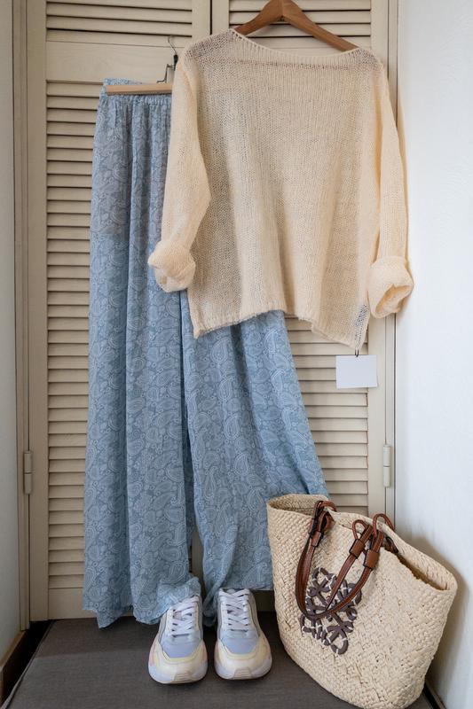 Прозорість - тренд сезону. Широкі штани палаццо з легкої прозорої тканини- це подвійний тренд🔥🔥🔥. Чудово стилізуються і з футболкою і з обʼємним светром. Орієнтуйтеся по замірах.