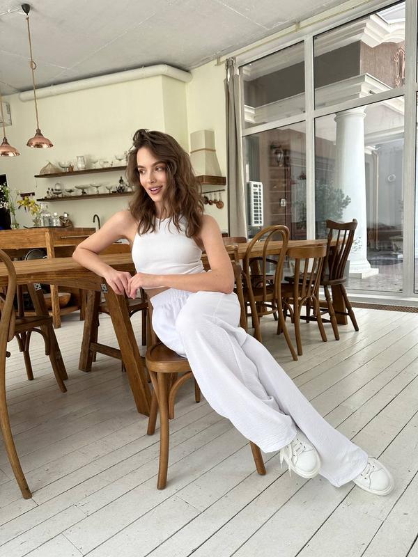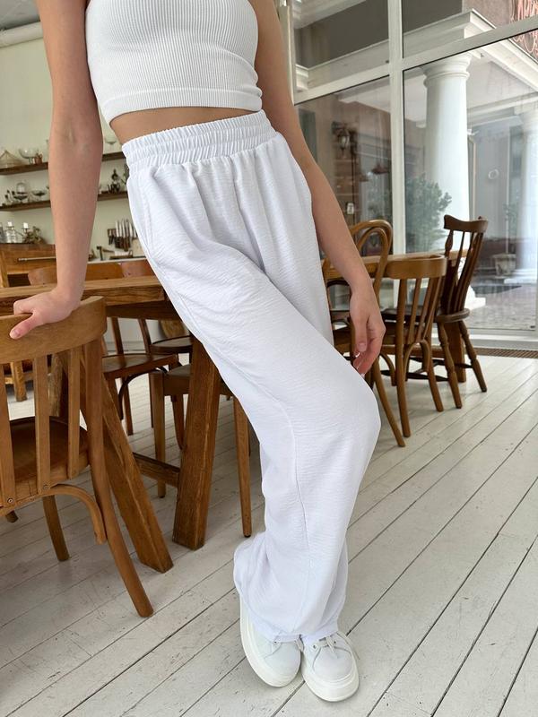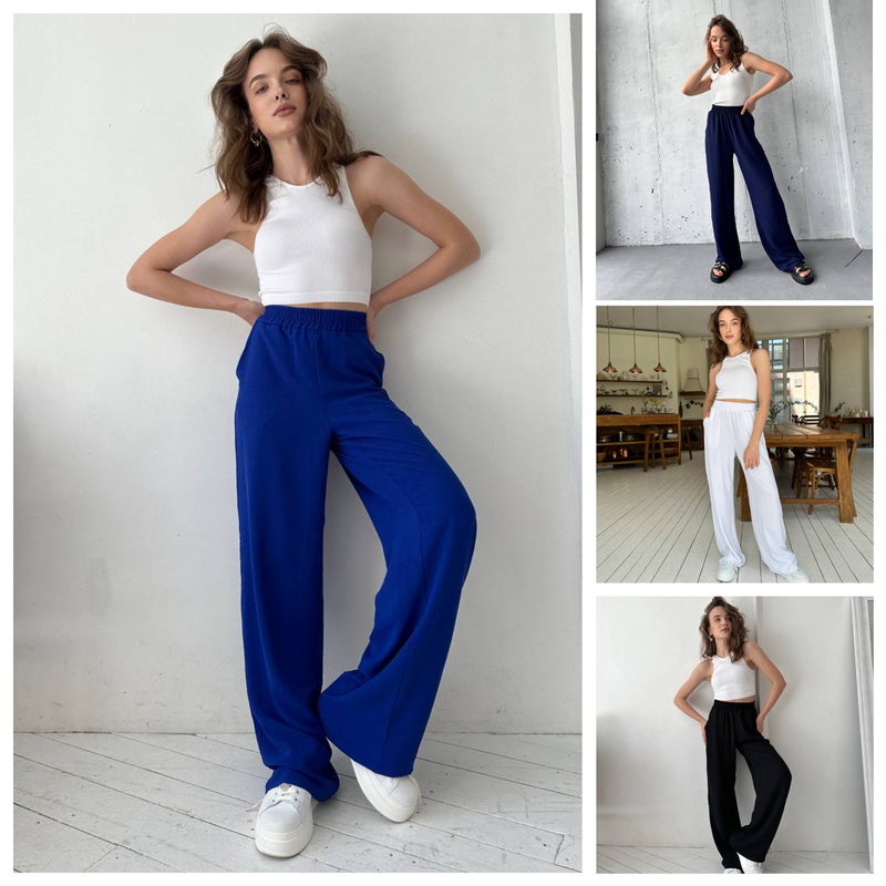 Штани палаццо жіночі 42-62 чорні, білі, електрик (сині) та темно-сині жатий віскозний креп