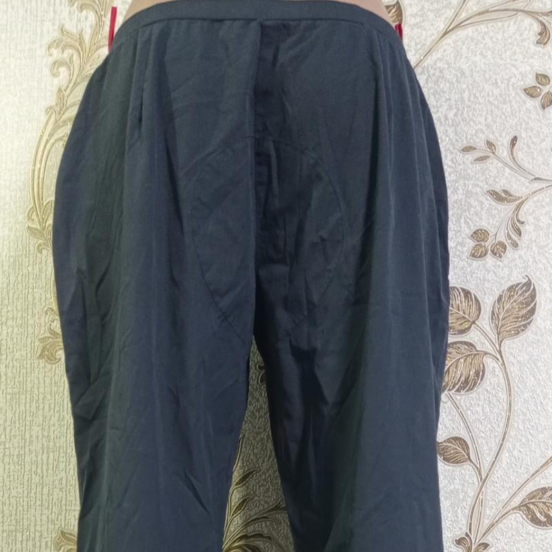 Вінтажні бавовняні тоненькі брюки Detail prada, Італія,р.44.Стан нової речі,без будь-яких ознак носки.Нижня частина кнопки на поясі,потребує закріплення,т.я.відпадає при розстібуванні(див.ост.фото).Вся фурнітура брендована,колір чорно-синій,крій прямий.Склад:77%бавовна,18%нейлон,5%еластан.Заміри:пот-40см,поб-59см,довжина-93см,крок-73см.