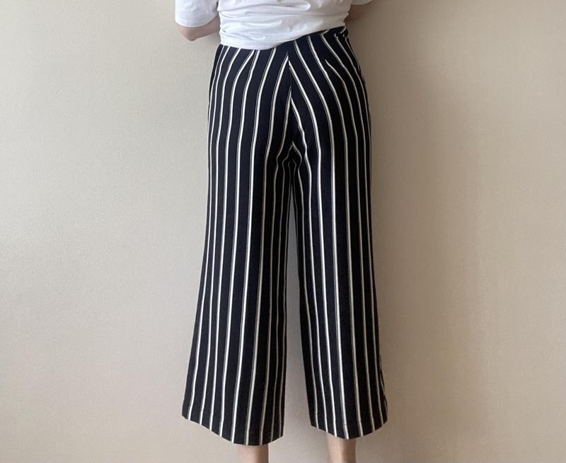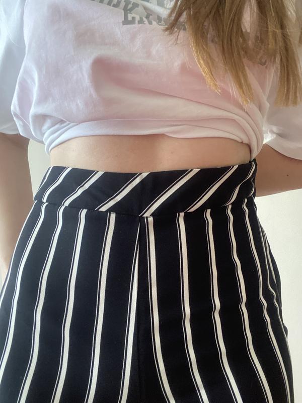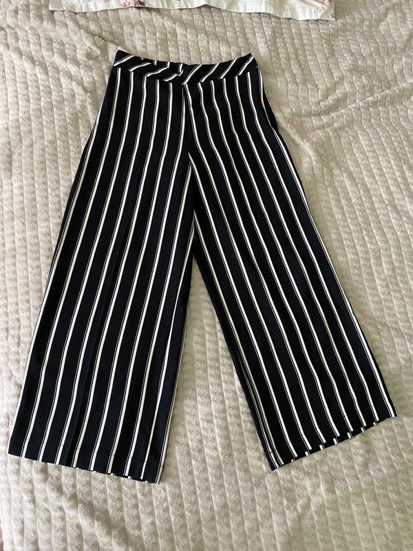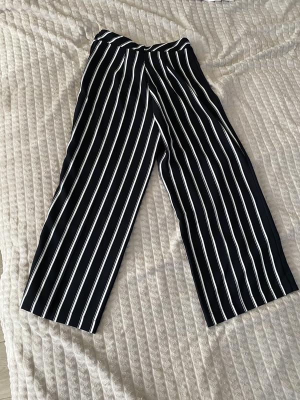 Смугасті штани-кюлоти. Потайна блискавка збоку та широкі прямі штанини. Посадка висока. Стан ідеальний, розмір М