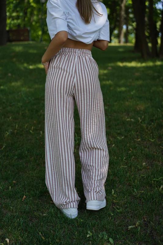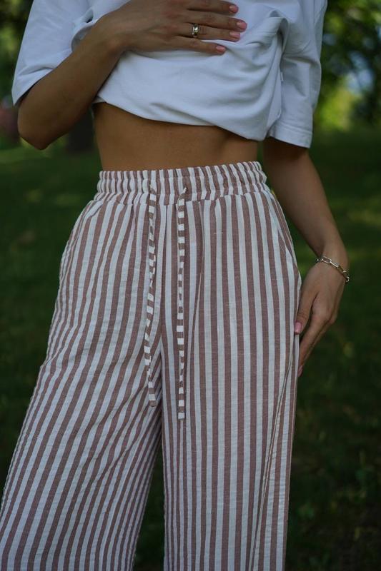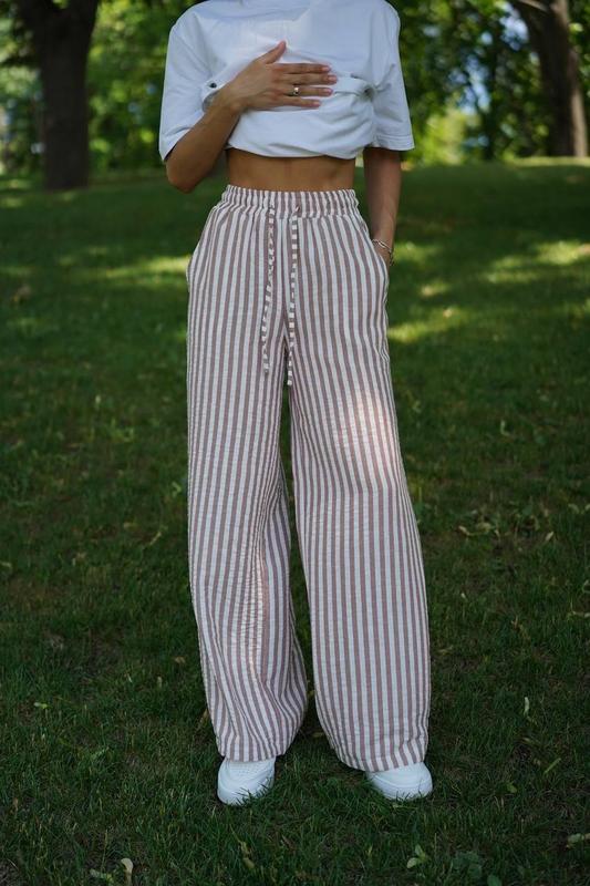 Трендові Штани палаццо з якісного льону у смужкуКольори: блакитний, бежевий, сірий