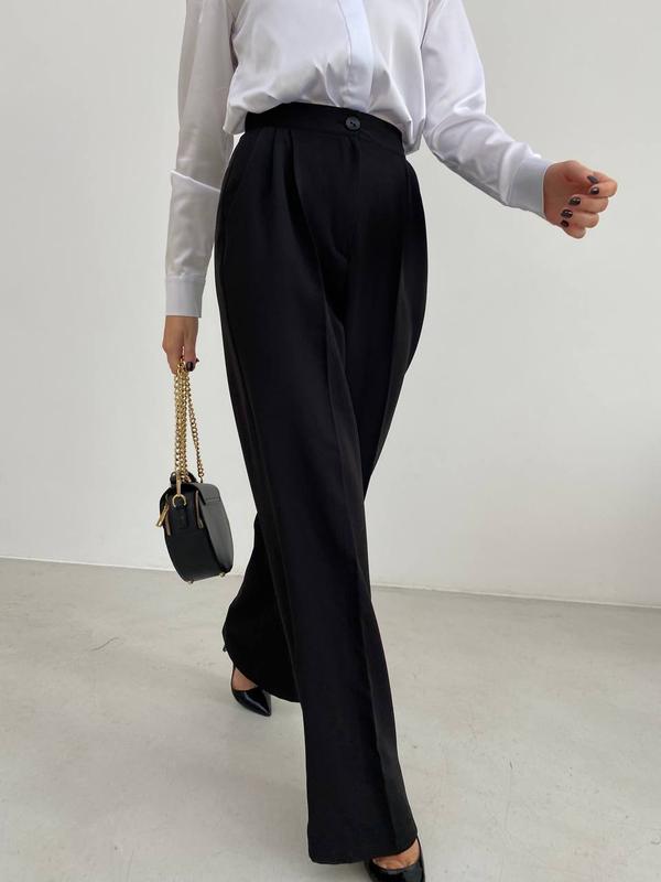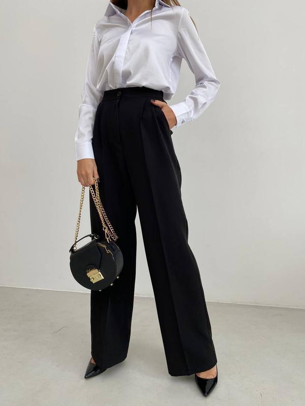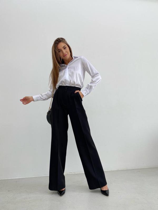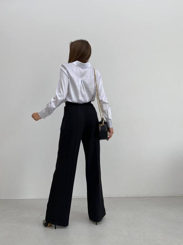 Класичні штани палаццо, незамінна річ, яка поєднується з будь-яким верхом і будь-яким взуттям. Правильне лекало, вдала посадка, ззаду пояс на резиночці.