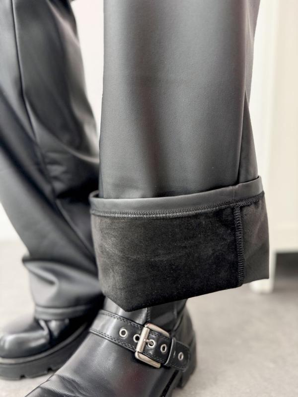 Брюки утеплені арт. lem. 963(click)Розміри: 50-52, 54-56, 58-60Тканина: еко шкіра утеплена Колір: чорнийЦіна 870 грн