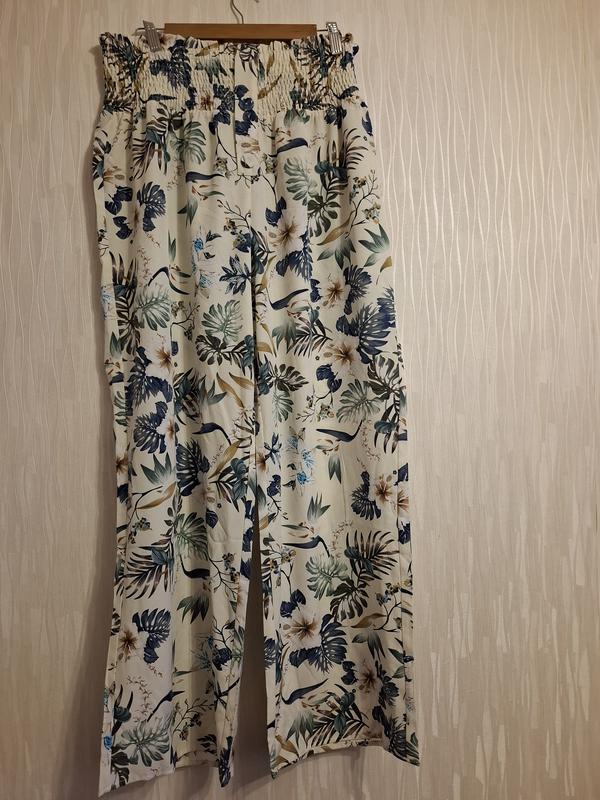 Продам нові штани широкі від стегон палаццо , пос жжата резинка ПОТ 40-55 ПОБ 62 Довжина 105/70 посадка 32/43 ширина штанини вгорі 37 внизу 30