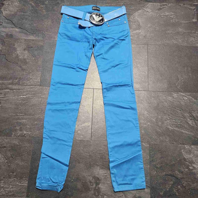 брюки жіночі сині штани з поясом. є плями на поясі (напевно, віддрукувався колір з інших речей) - на фото показано. виміри дивіться на фото. штани нові.