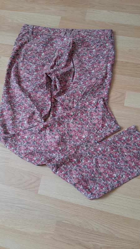 Ідеальний стан, тканина приємна до тіла, склад на фото. Вказано на 15 років, мала на розмір М. Орієнтуйтеся по замірах: талія ( але вони йдуть не на талії) 82, посадка спереду 21,5 см, довжина по зовнішньому шву 98см, по внутрішньому 75-76см.На талії є резиночки, щоб затягнути або послабити.