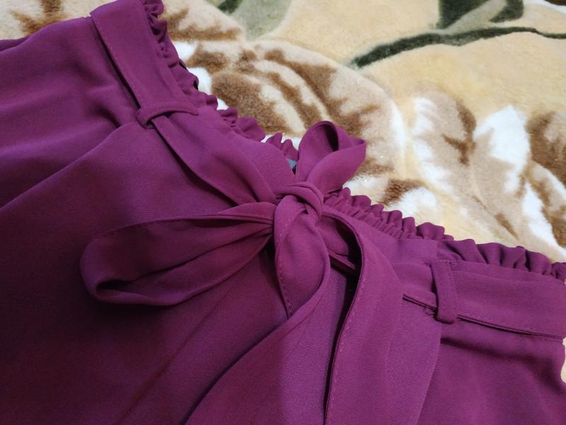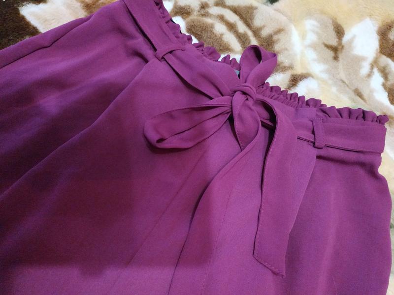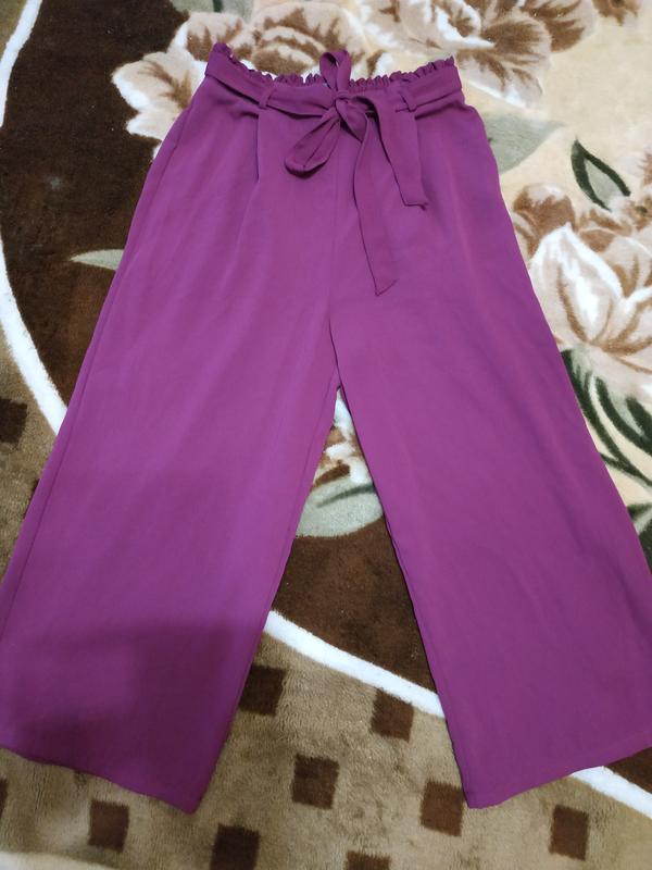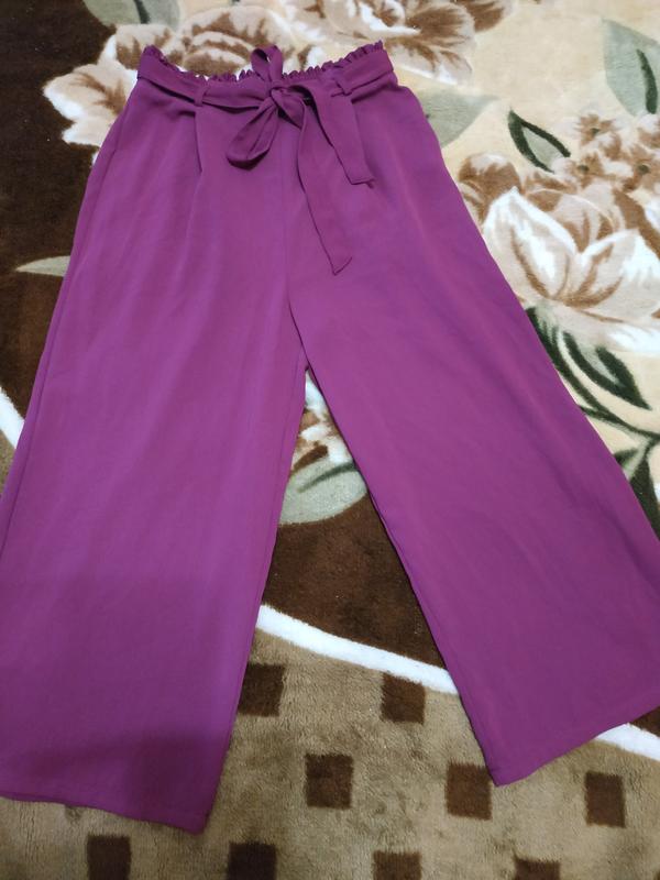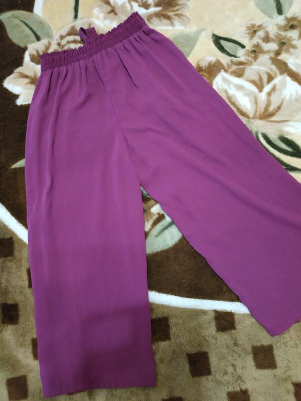 Кюлоти ззаду резинка ,на талії рюшу, під поясом защипи.. Стан ідеальний. Дефектів немає . Колір як на фото. ПОТ33-40,ПОБ50,посадка32/40, довжина 52/83,ЗА халошки27. Легкі ,летять,не мнуться.