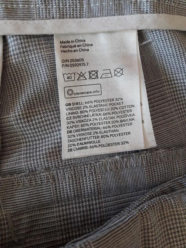 Картаті штани, завужені донизу. Стан нових. Є два бічних кишені. Тканина - не заминается. Склад - 66% поліестер, 32% віскоза, 2% еластан. Заміри: ПОТ - 40,5 см, ПОБ - 50 см, довжина - 85,5 см, посадка - 22/36 див.