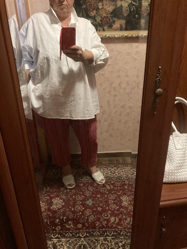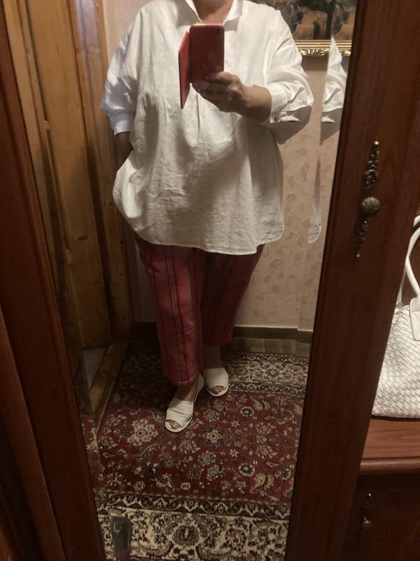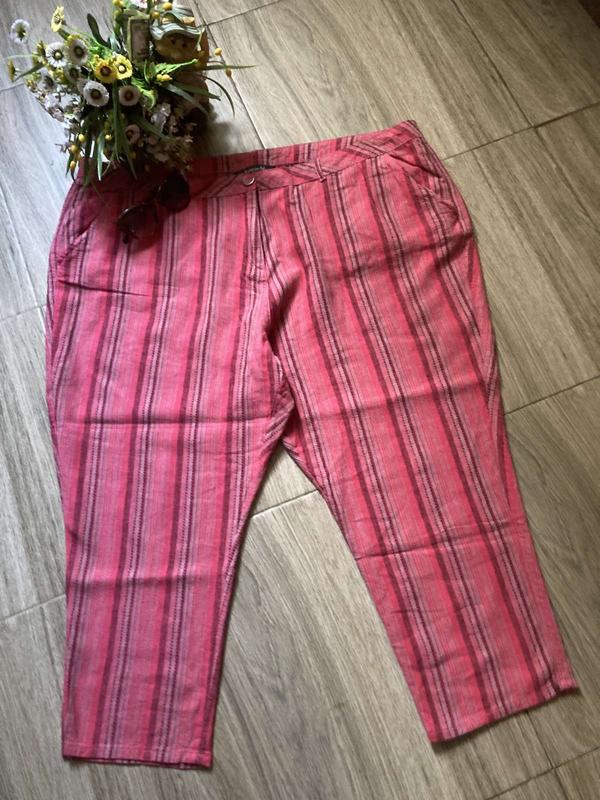 Круті брючки на повненьку красуню Стан нових.Льон.Укорочені , зауженые донизу Крутезные укорочені лляні штани дорогої фірми Бонмарше великого розміру Колір насичений рожевий з чорним. Попереду кишені"хулігани", ззаду імітація кишень" рамочку" Не носилися.З стокового магазину, запах відсутній. Заявлений 24 GB розмір або 52 європейський. Відповідає нашему58-62 Заміри: Довжина по боці 90 Довжина крокова 60 По талії 60 стегон 67 Реально на стегна 140+ Ширина низу 20 Ширина ноги в стегні 40 Висока посадка 34/49 Відправляю після оплати на карту