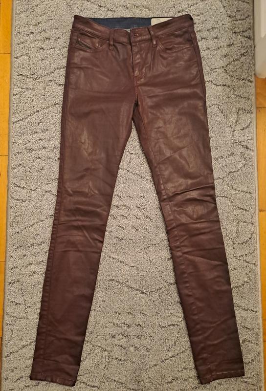 продам свої джинси Diesel , оригінал, дуже гарні. Колір бургунді, чи бордовий по нашому. Стан ідеальний, без дефектів. 92% котон, 8% єластан. З напиленням (дає ефект ніби шкіряні, але не такий лискучий). Розмір 26-27. Можу зробити додаткові фото або заміри.