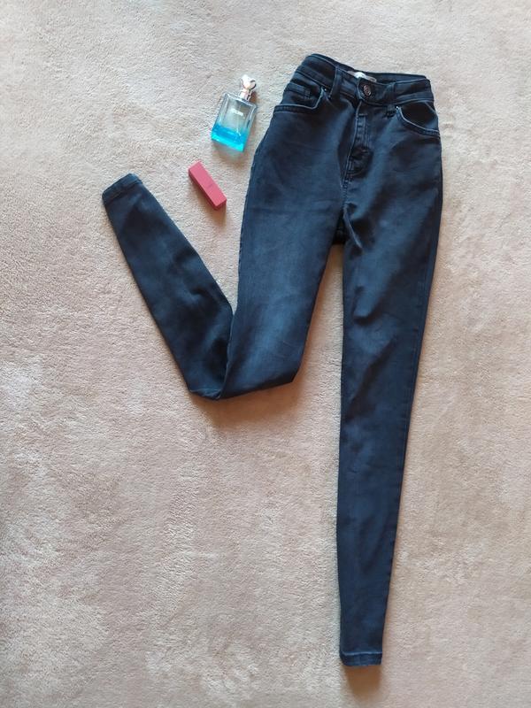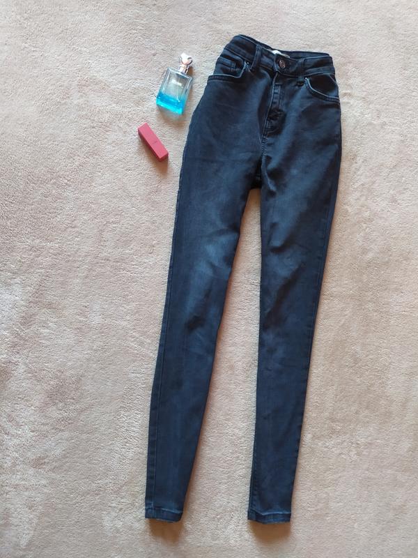 Базовые качественные стрейчевые чорно серые джинсы скинни высокая талия