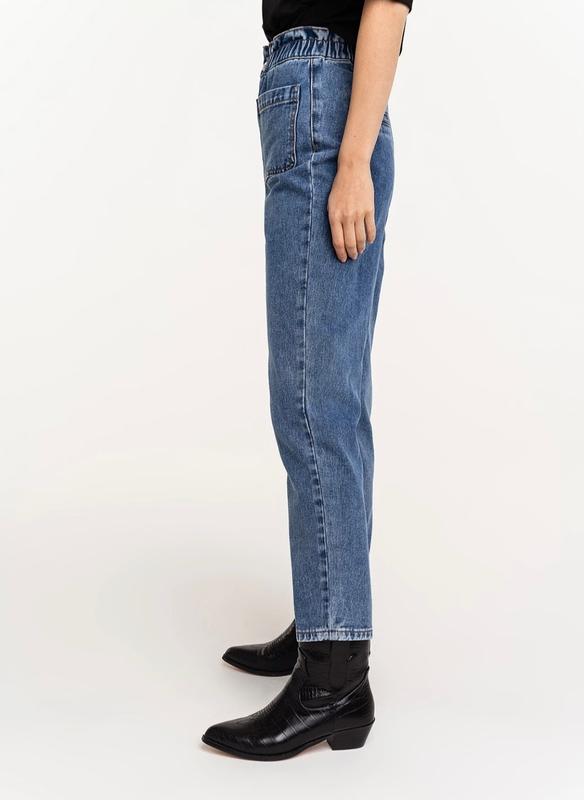 Розмір ХS/S (по замірам можна S)Дуже круті джинси, в ідеалі, майже не носила. Висока талія, завужені.Заміри: довжина 98см, шаг 66см, талія 28см (резинка), поб 46смСклад: 87% бавовна, 10% віскоза, 3% поліестер